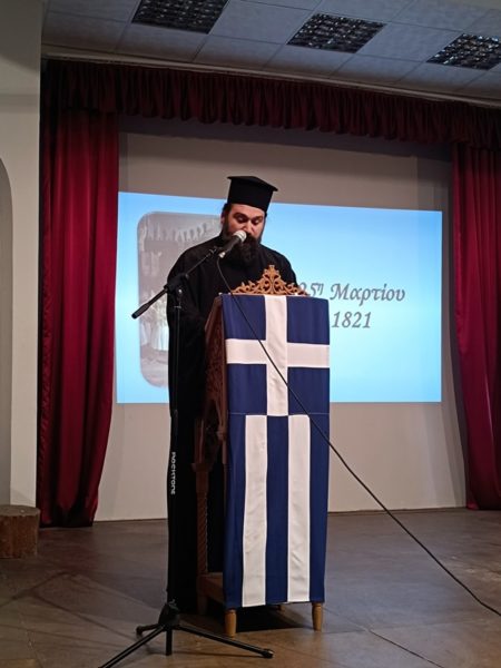 Την εορτή προλόγισε ο Σχολάρχης και Γέρων Δραγουμάνος Αρχιμανδρίτης π. Ματθαίος και πανηγυρικό λόγο εκφώνησε η καθηγήτρια Φιλόλογος Ζωή Παπαρνάκη.ο