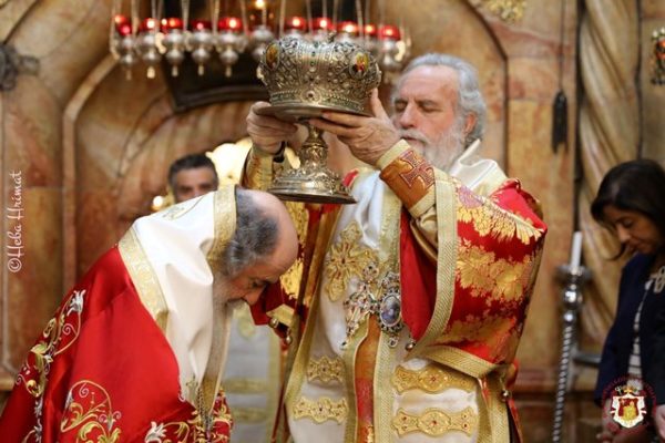 Τό θαυμαστόν γεγονός αὐτό ἑωρτάσθη τήν πρωΐαν τῆς Κυριακῆς διά θείας Λειτουργίας εἰς τόν Πανάγιον Τάφον, Προεξάρχοντος τοῦ Μακαριωτάτου Πατρός ἡμῶν καί Πατριάρχου Ἱεροσολύμων κ.κ. Θεοφίλου, συλλειτουργούντων τοῦ Σεβασμιωτάτου Μητροπολίτου Καπιτωλιάδος κ. Ἡσυχίου καί τῶν Σεβασμιωτάτων Ἀρχιεπισκόπων Γεράσων κ. Θεοφάνους, Κωνσταντίνης κ. Ἀριστάρχου, Σεβαστείας κ. Θεοδοσίου, Ἀνθηδῶνος κ. Νεκταρίου, Πέλλης κ. Φιλουμένου,  Ἁγιοταφιτῶν Ἱερομονάχων ὡς τοῦ Γέροντος Καμαράση Ἀρχιμανδρίτου π. Νεκταρίου, τοῦ Ἀρχιμανδρίτου π. Κλαυδίου, Ἀραβοφώνων Πρεσβυτέρων, Ἱερέων ἐκπροσώπων τῶν ποιμνίων Ρωσσίας, Ρουμανίας καί Γεωργίας ἐν εὐλαβεῖ συμμετοχῇ πολλῶν πιστῶν καί τοῦ Γενικοῦ Προξένου τῆς Ἑλλάδος εἰς τά Ἱεροσόλυμα κ. Εὐαγγέλου Βλιώρα.