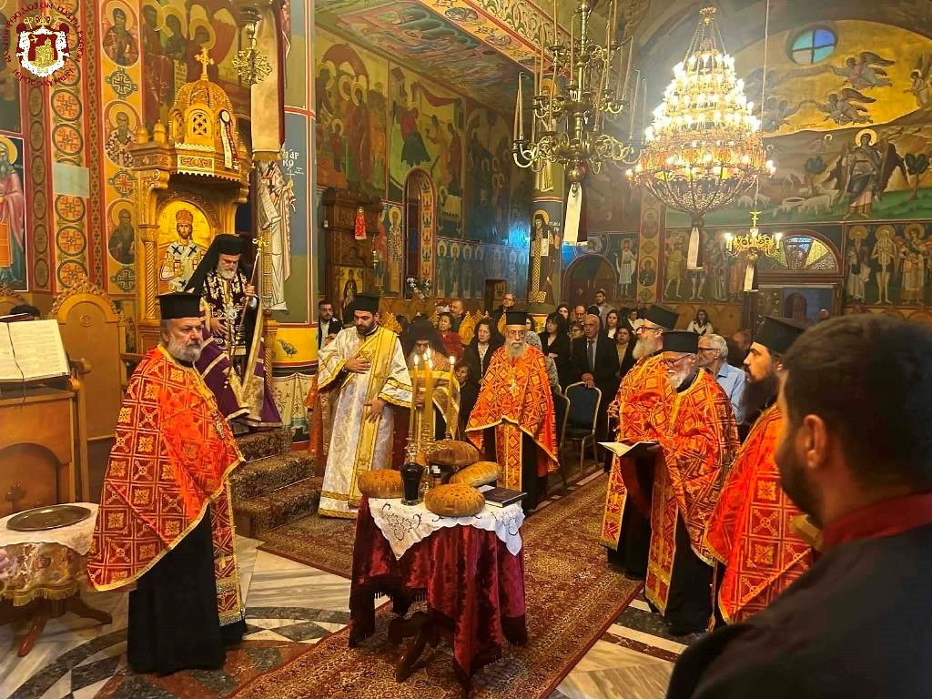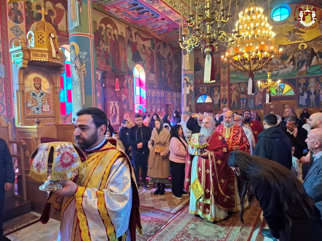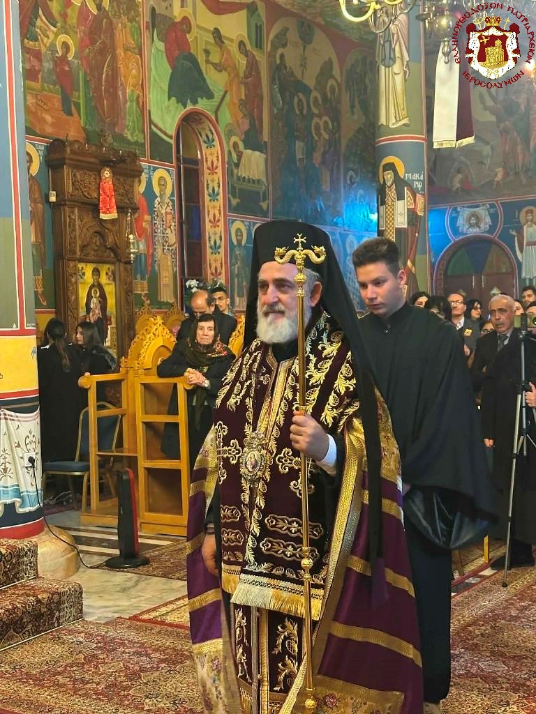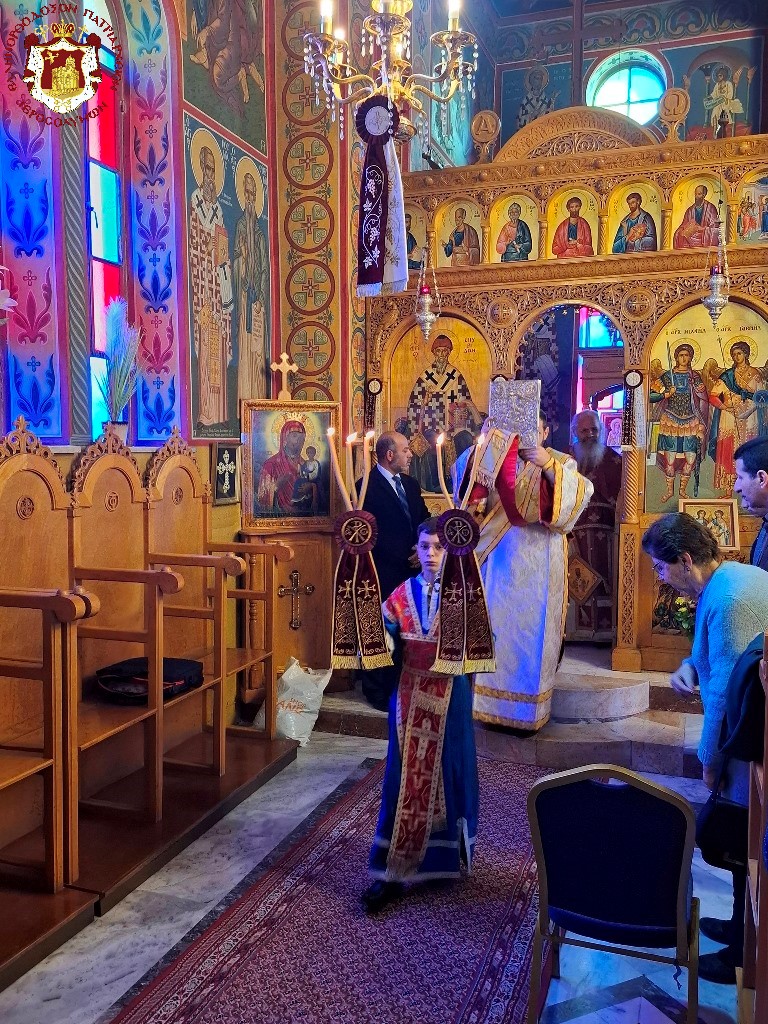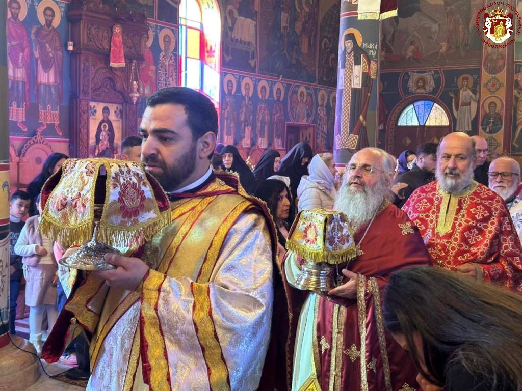 Τῆς θείας Λειτουργίας τήν πρωΐαν προεξῆρξεν ὁ Σεβασμιώτατος Ἀρχιεπίσκοπος Πέλλης κ. Φιλούμενος, συλλειτουργούντων τοῦ Πνευματικοῦ τῆς Ἱερᾶς Λαύρας Ὁσίου Σάββα τοῦ ἡγιασμένου Ἀρχιμανδρίτου π. Εὐδοκίμου, τοῦ Ἁγιοταφίτου Ἀρχιμανδρίτου π. Φιλουμένου, τῶν Ἱερέων τοῦ Μπετσαχούρ, τοῦ Ἱεροδιακόνου π. Εὐλογίου, καί ψαλλουσῶν τῶν ὡς ἄνω χορῳδιῶν τῇ συμμετοχῇ ἐν προσευχῇ τῶν Ἐπιτρόπων καί συνδρομητῶν τοῦ Ναοῦ καί ἀθρόου ἐκκλησιάσματος ἐξ ἐντοπίων πιστῶν καί προσκυνητῶν.