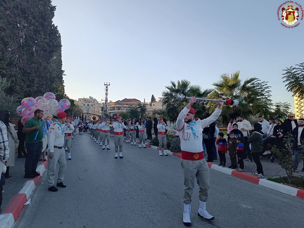 Τοῦ Ἑσπερινοῦ ἀφ’ ἑσπέρας προεξῆρξεν ὁ Σεβασμιώτατος Μητροπολίτης Ἑλενουπόλεως κ. Ἰωακείμ, συνιερουργούντων τοῦ Πνευματικοῦ τῆς Ἱερᾶς Λαύρας Ὁσίου Σάββα τοῦ ἡγιασμένου Ἀρχιμανδρίτου π. Εὐδοκίμου, τοῦ Ἡγουμένου τῆς Μονῆς Ἀρχιμανδρίτου π. Ἰγνατίου, τῶν Ἱερέων τοῦ Μπετσαχούρ, τοῦ Ἱεροδιακόνου π. Εὐλογίου, ψαλλούσης ἑλληνιστί δεξιά χορῳδίας ἐξ Ἑλλάδος ὑπό τόν Ἱεροψάλτην κ. Εὐστάθιον Μαλάκην καί ἀραβιστί ἀριστερά τῆς χορῳδίας τῆς Κοινότητος τοῦ Μπετσαχούρ.