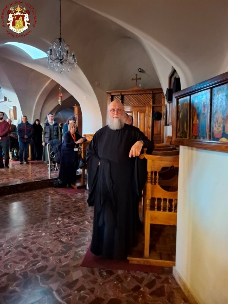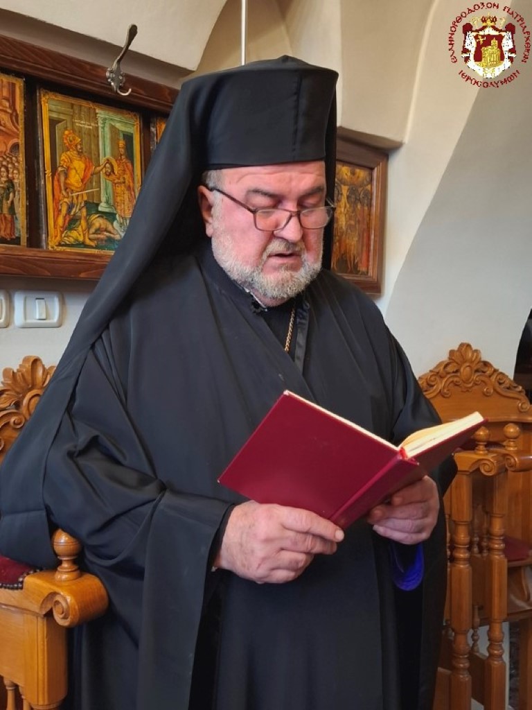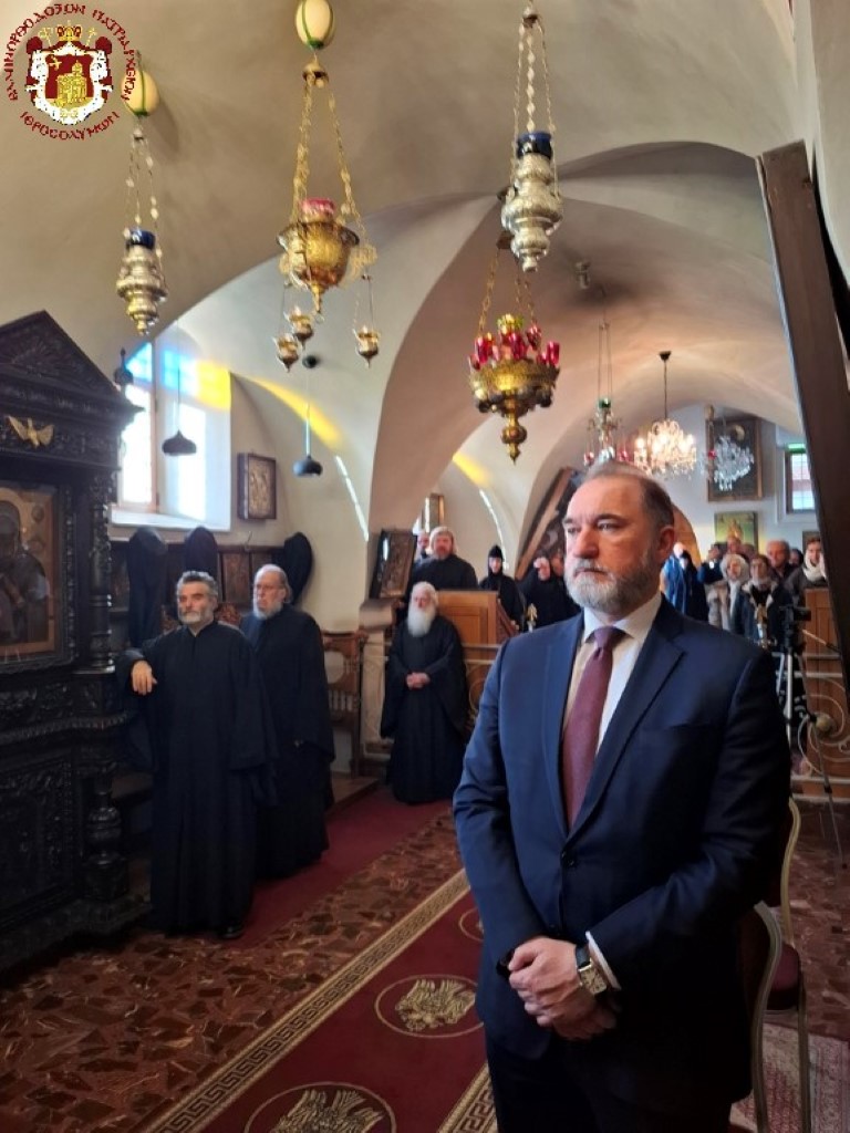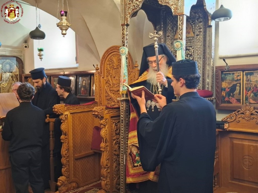 Τῆς πανηγυρικῆς ἑορτῆς ταύτης προεξῆρξεν ὡς χοροστατῶν ἡ Α.Θ.Μ. ὁ Πατήρ ἡμῶν καί Πατριάρχης Ἱεροσολύμων κ.κ. Θεόφιλος, ἱερουργοῦντος τοῦ ἐφημερίου τοῦ Ἱεροῦ Ναοῦ Ἀρχιμανδρίτου π. Ἀμφιλοχίου, συμπροσευχομένων τῶν Ἀρχιερέων καί Ἁγιοταφιτῶν Ἀρχιμανδριτῶν, Ἱερέων, Ἱεροδιακόνων καί μοναχῶν τῆς Αγιοταφιτικῆς Ἀδελφότητος καί τῶν ἐκπροσώπων τοῦ Πατριαρχείου Μόσχας καί Ρουμανίας, παρουσίᾳ τοῦ Γενικοῦ Προξένου τῆς Ἑλλάδος εἰς τά Ἱεροσόλυμα κ. Δημητρίου Ἀγγελοσοπούλου, ψάλλοντος τοῦ Πρωτοψάλτου τοῦ Πανιέρου Ναοῦ τῆς Ἀναστάσεως διακόνου π. Εὐσταθίου, καί βοηθῶν αὐτοῦ τοῦ κ. Ἀριστείδου ἐξ Ἑλλάδος καί τῶν μαθητῶν τῆς Πατριαρχικῆς Σχολῆς Σιών καί μετεχόντων Ἱεροσολυμιτῶν πιστῶν καί προσκυνητῶν.