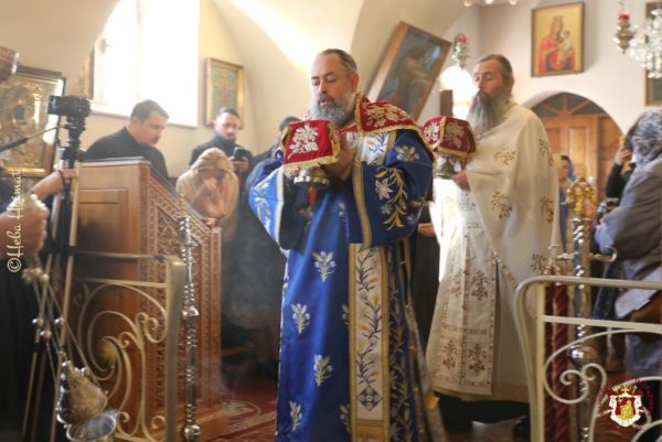 Το πρωί τελέστηκε θεία Λειτουργία στον εν τω Χωρίω των Ποιμένων Ιερό Ναό της Συνάξεως της Θεοτόκου, τον οποίον έκτισεν ο μακαριστός Πνευματικός της Λαύρας του Οσίου Σάββα του Ηγιασμένου π. Σεραφείμ Αγιοσαββίτης, προεξάρχοντος του Σεβασμιωτάτου Αρχιεπισκόπου Μαδάβων κ. Αριστοβούλου, συλλειτουργούντων του νυν Πνευματικού του Αγίου Σάββα Αρχιμανδρίτου π. Ευδοκίμου, των Ιερέων της περιοχής π. Γεωργίου και π. Ιωάννου και άλλων, ψαλλούσης της χορωδίας του Χωρίου των Ποιμένων και μετεχόντων των μελών της Κοινότητος ταύτης και των ομόρων περιοχών της Βηθλεέμ.