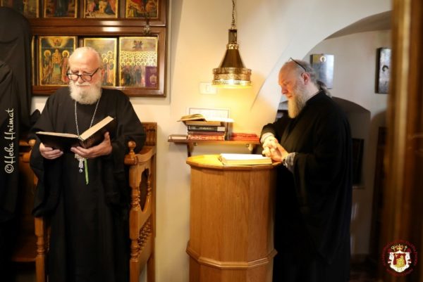 Μετά το πέρας της θείας Λειτουργίας ο ηγούμενος της Μονής Αρχιμανδρίτης π. Ιγνάτιος παρέθεσε δεξίωσιν στο Ηγουμενείον.