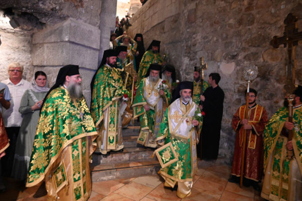 Προς τιμήν αυτού του γεγονότος, της Ανυψώσεως του Τιμίου Σταυρού, τελέσθηκε Μέγας Πατριαρχικός Εσπερινός αφ’ εσπέρας στο Καθολικό του Ναού της Αναστάσεως,, προεξάρχοντος του Μακαριωτάτου Πατριάρχου Ιεροσολύμων κ.κ. Θεοφίλου.