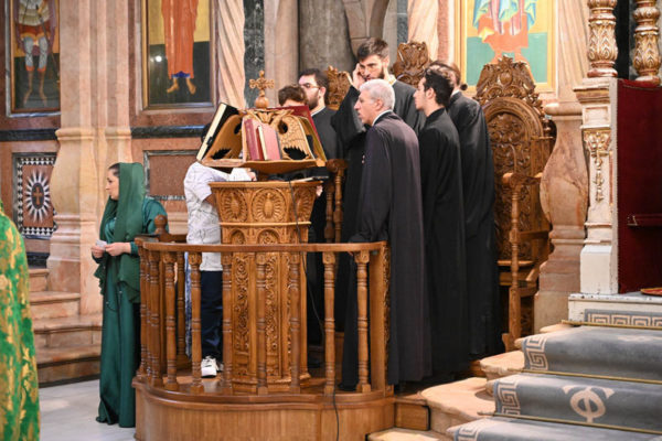 “Χαίροις… Σταυρέ τίμιε· δι᾿ οὗ διαλέλυται, ἡ φθορά καί ἐξήνθησεν, ἡ ἀφθαρσία, καί βροτοί ἐθεώθημεν, καί διάβολος, παντελῶς καταβέβληται. Σήμερον ἀνυψούμενον, χερσί καθορῶντές σε, Ἀρχιερέων ὑψοῦμεν, τόν ὑψωθέντα [Χριστόν] ἐν μέσῳ σου, καί σέ προσκυνοῦμεν, ἀρυόμενοι πλουσίως τό μέγα ἔλεος”. Ἀμήν. Ἔτη πολλά καί εἰρήνη ἐν τῷ κόσμῳ καί τῇ δοκιμαζομένῃ περιοχῆ ἡμῶν“.