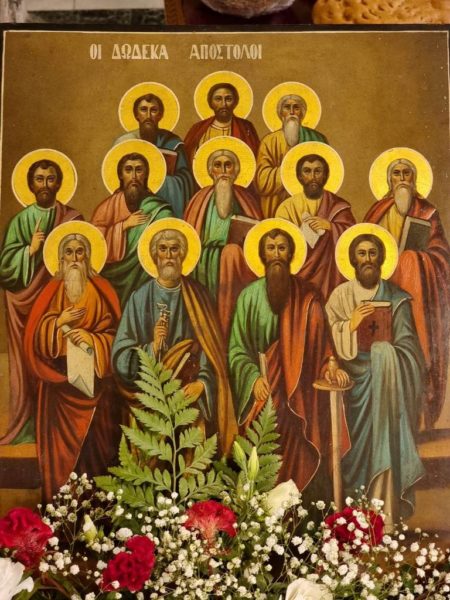 Μετά δέ τοῦ ὑμνῳδοῦ εἴπωμεν: Ἡ τῶν Ἁγίων Ἀποστόλων δωδεκάς, οἱ «τῆς Ἐκκλησίας οἱ ἀλάξευτοι, ὄντως πύργοι καὶ στῦλοι ἀσάλευτοι, τῷ Δεσπότῃ τῶν ὅλων, ἱκετεύσατε σωθῆναι τάς ψυχάς ἡμῶν» καί δωρηθῆναι τῷ κόσμῳ καί τῇ περιοχῇ ἡμῶν τήν εἰρήνην. Ἀμήν. Ἔτη πολλά».