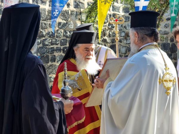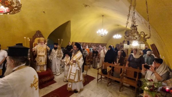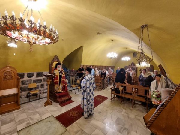 Εἰς τήν ὡραίαν παραλιακήν Ἱεράν Μονήν ταύτην ἐχοροστάτησε εἰς Ἑσπερινόν ἀφ’ ἑσπέρας καί προεξῆρξε τῆς πανηγυρικῆς Πατριαρχικῆς θείας Λειτουργίας ἡ Α.Θ.Μ. ὁ Πατήρ ἡμῶν καί Πατριάρχης Ἱεροσολύμων κ.κ. Θεόφιλος, συλλειτουργούντων Αὐτῷ τῶν Σεβασμιωτάτων Μητροπολιτῶν Ναζαρέτ κ. Κυριακοῦ καί Πτολεμαΐδος κ. Μακαρίου, τοῦ Γέροντος Ἀρχιγραμματέως Σεβασμιωτάτου Ἀρχιεπισκόπου Κωνσταντίνης κ. Ἀριστάρχου καί τοῦ Γραμματέως τῆς Ἁγίας και Ἱερᾶς Συνόδου Ἀρχιμανδρίτου π. Χριστοδούλου, Ἀραβοφώνων και Ρωσοφώνων Ἱερέων τῶν ὁμόρων περιοχῶν, τοῦ Ἀρχιδιακόνου π. Μάρκου καί τοῦ Ἱεροδιακόνου π. Προδρόμου καί πιστῶν τῆς περιοχῆς.
