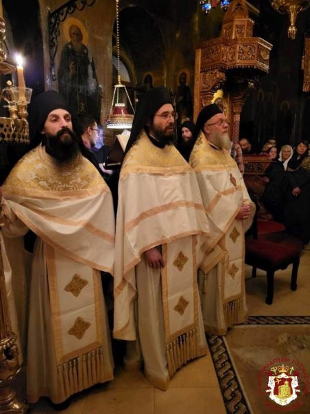 Ἀκολούθως ἐτελέσθη ἡ ὁλονύκτιος ἀγρυπνία, προεξάρχοντος τοῦ Μακαριωτάτου καί συλλειτουργούντων Αὐτῷ τοῦ Σεβασμιωτάτου Ἀρχιεπισκόπου Κωνσταντίνης κ. Ἀριστάρχου, τοῦ Σεβασμιωτάτου Ἀρχιεπισκόπου Ἱεραπόλεως κ. Ἰσιδώρου, Ἁγιοταφιτῶν Ἱερομονάχων ὡς τοῦ Γέροντος Καμαράση Ἀρχιμανδρίτου π. Νεκταρίου καί τοῦ Χοζεβίτου Ἱερομονάχου π. Χρυσογόνου, ψαλλόντων τῶν κ. Σταύρου Χρήστου, ψάλτου εἰς τόν Ναόν Ἁγίας Παρασκευῆς Ἀττικῆς, κ. Παπαδημητρίου Νικολάου Πρωτοψάλτου τοῦ Ἱεροῦ Ναοῦ Ἁγίας Κυριακῆς Πύργου Ἠλείας, κ. Σταύρου Ἰωάννου Πρωτοψάλτου εἰς τόν Ἱερόν Ναόν Ἁγίου Δημητρίου Τριπόλεως, κ. Θεοτοκάτου Νικολάου Λαμπαδαρίου εἰς τόν Ἱ. Ναόν Προφήτου Ἠλιοῦ τοῦ Δήμου Ἁγίας Παρασκευῆς Ἀττικῆς, κ Κάμτσιου Ἠλιοῦ καί Παναγιώτου, Πρωτοψάλτου καί Λαμπαδαρίου ἀντιστοίχως τοῦ παρεκκλησίου Ἁγίων Ἀποστόλων τοῦ Δήμου Ἁγίας Παρασκευῆς Ἀττικῆς, μετά τῶν μοναχῶν τῆς Μονῆς, ἐν συμμετοχῇ λαοῦ πολλοῦ διά πρώτην φοράν μετά τήν ἀπερχομένην πανδημίαν τοῦ covid – 19.