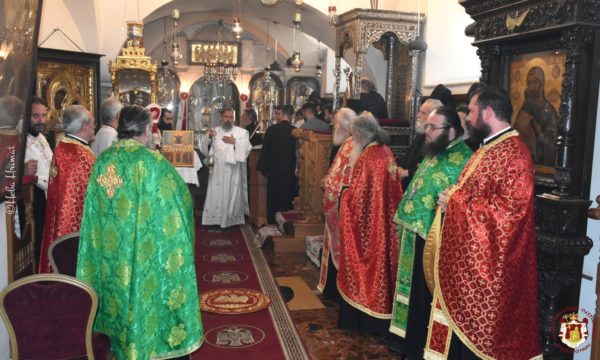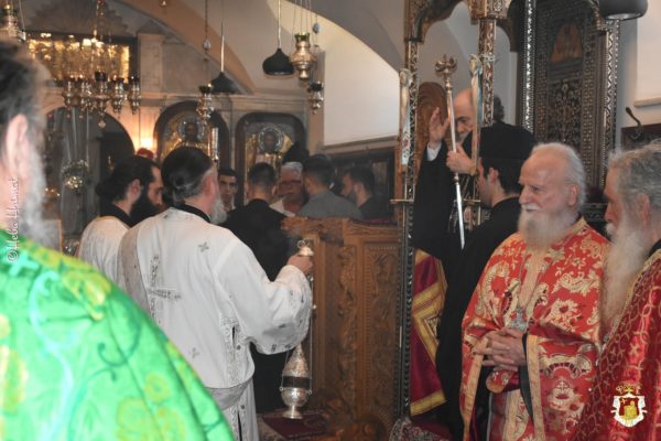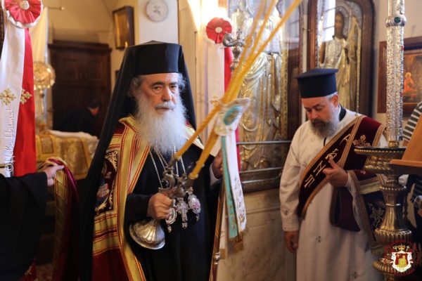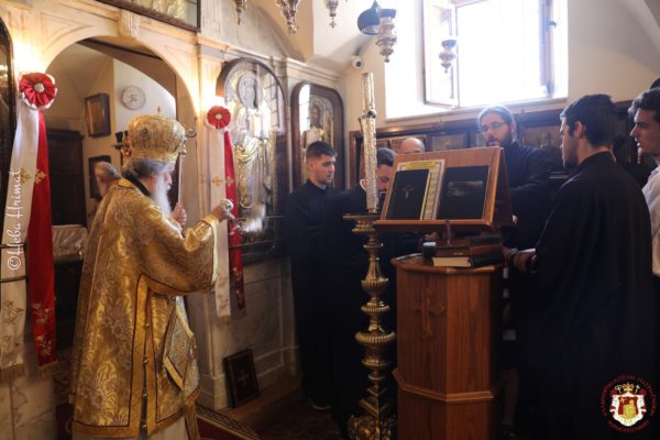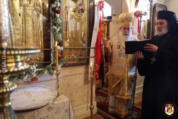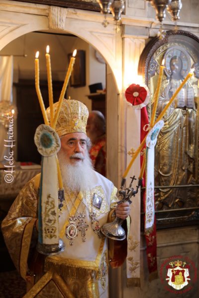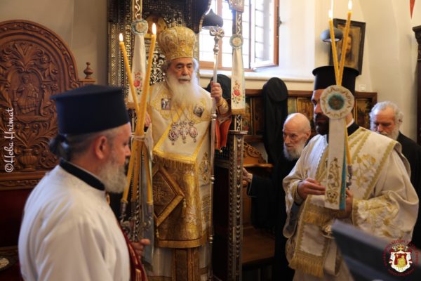 Το απόγευμα της παραμονής της εορτής τελέστηκε Εσπερινός χοροστατούντος του Μακαριωτάτου Πατριάρχη Ιεροσολύμων κ.κ. Θεοφίλου Γ’.