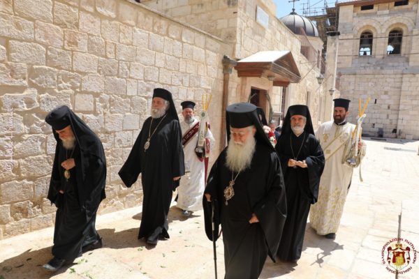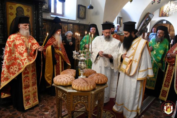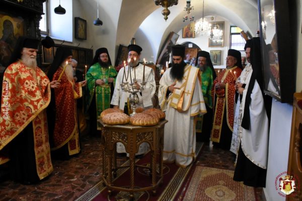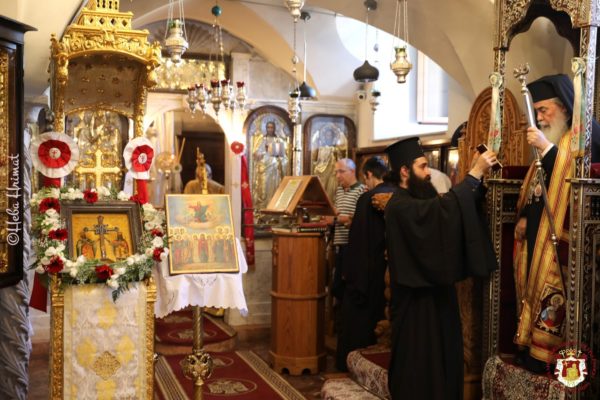 Τούτων πάντων ἕνεκεν καί εὐγνωμόνως τιμῶσα ἡ ἁγία ἡμῶν τῶν Ἱεροσολύμων Ἐκκλησία τήν μνήμην αὐτῶν, ἐπετέλεσε θείαν Πατριαρχικήν Λειτουργίαν ἐν τῷ ἐπωνύμῳ Μοναστηριακῷ Ναῷ αὐτῶν, ἀναπέμψασα οὕτω εὐχαριστήριον δοξολογίαν τῷ Ἁγίῳ Τριαδικῷ Θεῷ.