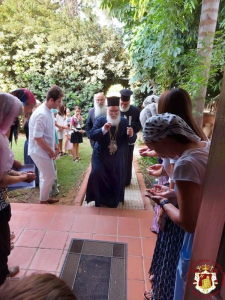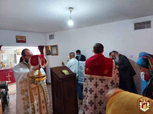 Εἰς τήν Θείαν Λειτουργίαν ἔψαλαν Σλαβωνιστί, Ἑλληνιστί, Ρουμανιστί καί Ἀραβιστί ὁμοθυμαδόν ἅπαντα τά μέλη τῆς Ἑλληνορθοδόξου Ρωσοφώνου Ἐνορίας ὑπό τήν διεύθυνσιν τοῦ Ἡγουμένου αὐτῶν, Σεβασμιωτάτου Ἀρχιεπισκόπου Μαδάβων κ. Ἀριστοβούλου, ὁ ὁποῖος ἐξεφώνησε τόν Θεῖον Λόγον Ρωσσιστί.