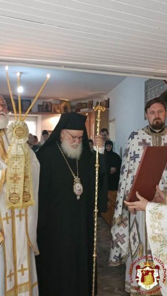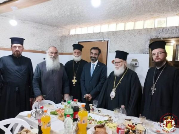 Μετά τό πέρας τῆς Θείας Λειτουργίας ὁ Ἡγούμενος Σεβασμιώτατος Ἀρχιεπίσκοπος Μαδάβων κ. Ἀριστόβουλος παρέθεσε ἑόρτιον τράπεζαν εἰς τόν Πανιερώτατον καί τήν Συνοδείαν Αὐτοῦ.