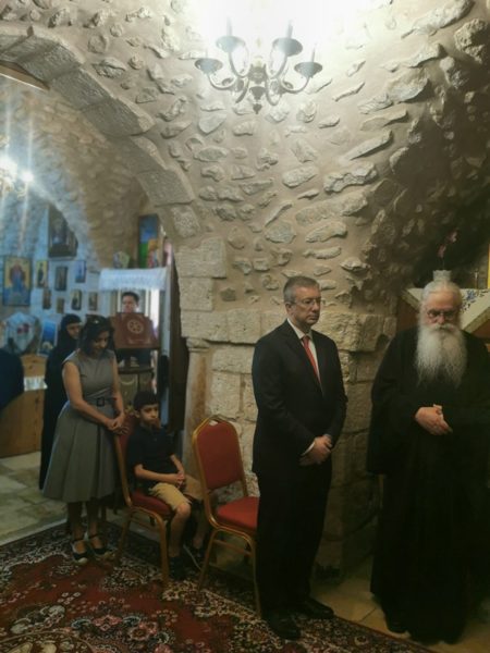 Το απόγευμα τελέσθηκε Εσπερινός και το πρωί θεία Λειτουργία, προεξάρχοντος του Σεβασμιωτάτου Μητροπολίτη Καπιτωλιάδος κ. Ησυχίου, συλλειτουργούντων αυτώ του Αρχιμανδρίτου π. Κλαυρίου, του Αρχιμανδρίτου π. Ιερωνύμου, του Αραβοφώνου Πρεσβυτέρου Νεκταρίου, και του Ιεροδιακόνου π. Ευλογίου, ψάλλοντος του Τυπικάρη του μοναστηριακού Ναού Αγίων Κωνσταντίνου και Ελένης Αρχιμανδρίτου π. Αλεξίου και του Ιεροδιακόνου π. Δοσιθέου δεξιά ελληνιστί και του κ. Ριμόν Κάμαρ της χορωδίας του Αγίου Ιακώβου του Αδελφοθέου αριστερά αραβιστί και μετέχοντος ευσεβούς εκκλησιάσματος εκ μοναζουσών και λαικών πιστών, Αραβοφώνων, Ελληνοφώνων, Ρωσοφώνων και Ρουμανοφώνων παρουσία του Γενικού Προξένου της Ελλάδος εις Ιεροσόλυμα κ. Ευαγγέλου Βλιώρα.