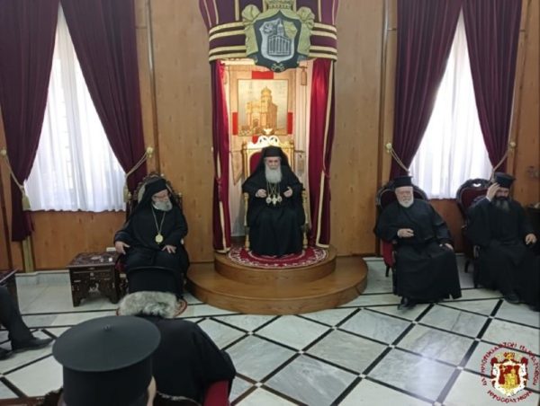 Μετά την Θεία Λειτουργία η Αρχιερατική συνοδεία απέδωσε τα σέβη της στον Μακαριώτατο Πατριάρχη Ιεροσολύμων κ.κ. Θεόφιλο στο Γραφείου του.