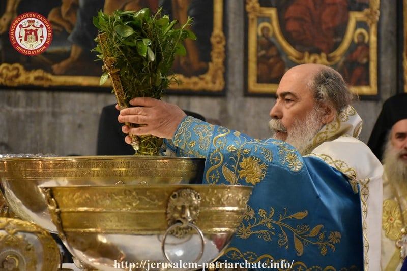 Κατ᾽ αυτήν, ο ΜακαριώτατοςΠατριάρχης Ιεροσολύμων κ.κ. Θεόφιλος, περιστοιχούμενος υπό των Αγιοταφιτών Αρχιερέων τέλεσε την τελετήν του Μεγάλου Αγιασμού στο Καθολικό του Πανιέρου Ναού της Αναστάσεως και ηγίασε τον Ναόν, τους Αρχιερείς, τους Ιερείς και ολίγους πιστούς, λόγω των μέτρων του covid – 19.