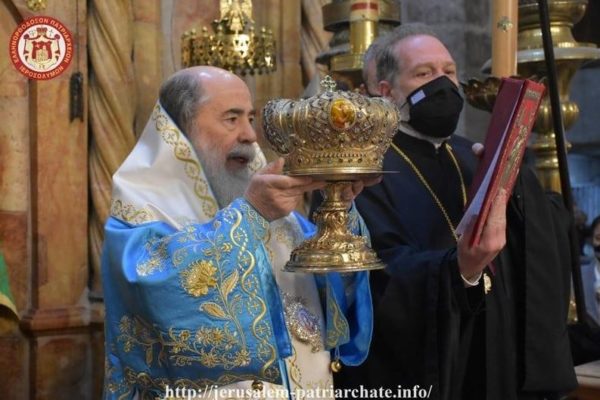 Κατ᾽ αυτήν, ο ΜακαριώτατοςΠατριάρχης Ιεροσολύμων κ.κ. Θεόφιλος, περιστοιχούμενος υπό των Αγιοταφιτών Αρχιερέων τέλεσε την τελετήν του Μεγάλου Αγιασμού στο Καθολικό του Πανιέρου Ναού της Αναστάσεως και ηγίασε τον Ναόν, τους Αρχιερείς, τους Ιερείς και ολίγους πιστούς, λόγω των μέτρων του covid – 19.
