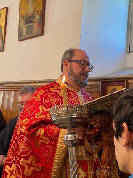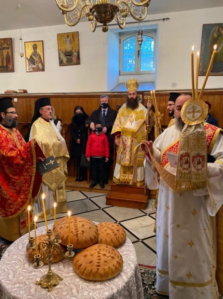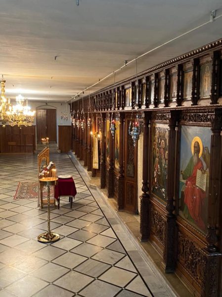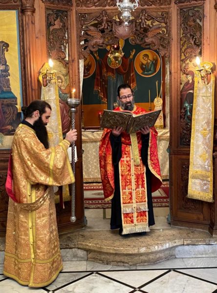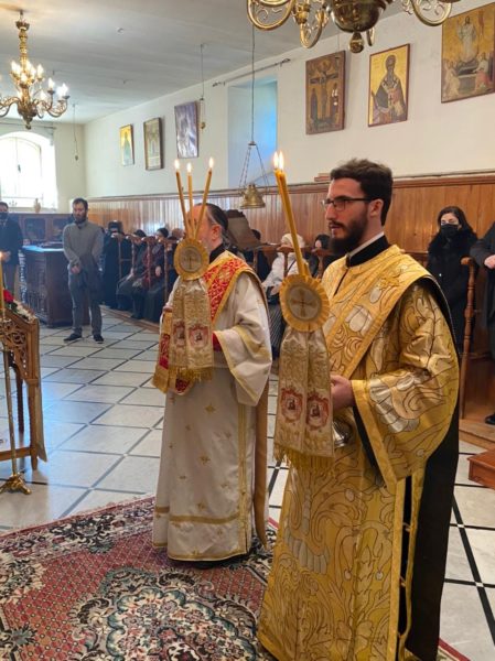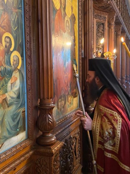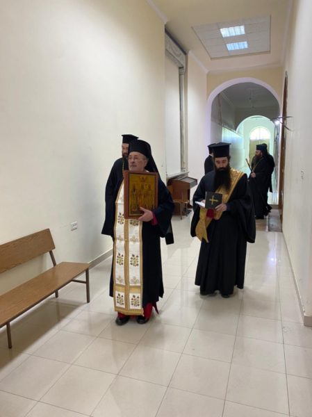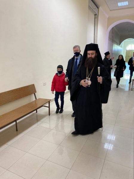 Μετά τήν θείαν Λειτουργίαν ὁ Σχολάρχης Ἀρχιμανδρίτης π. Ματθαῖος ἐδεξιώθη καθηγητάς, μαθητάς καί τό ἐκκλησίασμα εἰς τήν αἴθουσαν τελετῶν τῆς Σχολῆς.
