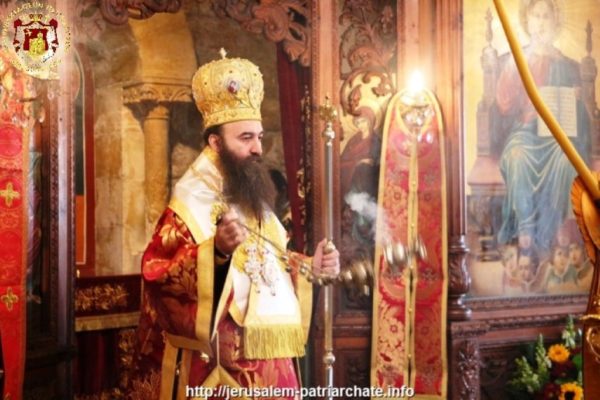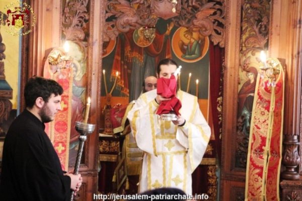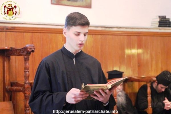 Τελέσθηκε Εσπερινός και Θεία Λειτουργία, προεξάρχοντος του Προέδρου της Σχολικής Εφορείας Γέροντος Σκευοφύλακος Σεβασμιωτάτου Αρχιεπισκόπου Ιεραπόλεως κ. Ισιδώρου και συλλειτουργούντων του Σχολάρχου και Γέροντος Δραγουμάνου Αρχιμανδρίτου π. Ματθαίου, και των Πρεσβυτέρων π. Αθανασίου και π. Νεκταρίου, του Γραμματέως της Αγίας και Ιεράς Συνόδου, Ιεροδιακόνου π. Συμεών και συμμετεχόντων των καθηγητών και μαθητών της Σχολής, επί παρουσία του Γενικού Προξένου της Ελλάδος εις τα Ιεροσόλυμα κ. Ευαγγέλου Βλιώρα.