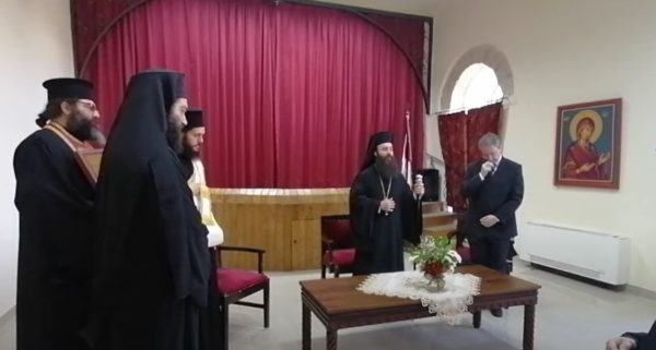 Μετά την θεία Λειτουργία, ο Σχολάρχης εδεξιώθη τον Αρχιερέα, την συνοδείαν αυτού και το εκκλησίασμα στην αίθουσα τελετών της Σχολής.