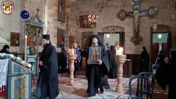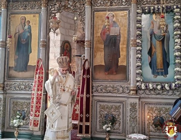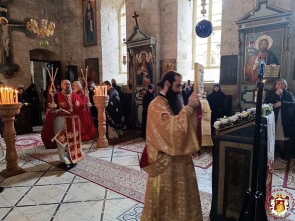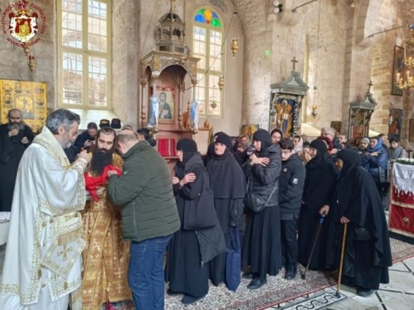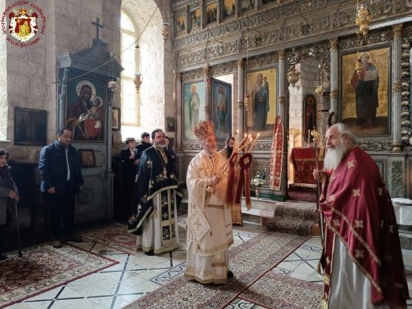 Την Πατριαρχικήν και Αρχιερατικήν Συνοδείαν και τον λαόν εδεξιώθη ο μετά ζήλου επιμελούμενος των της Μονής Αρχιμανδρίτης π. Κάλλιστος.