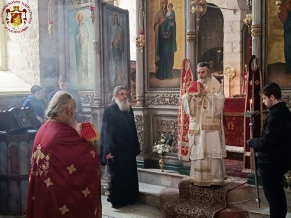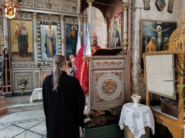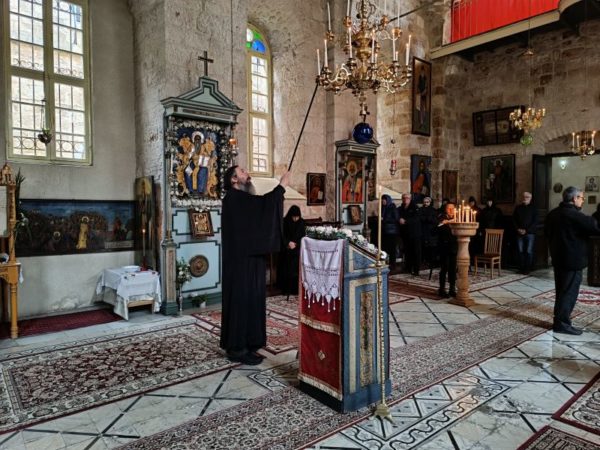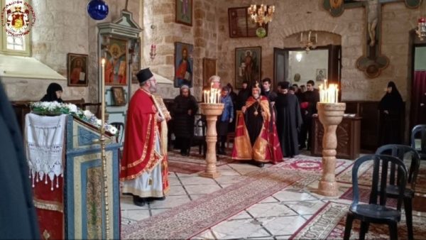 Παραμονή της εορτής τελέστηκε ο Εσπερινός, και ανήμερα Θεία Λειτουργία προεξάρχοντος του Σεβασμιωτάτου Αρχιεπισκόπου Γεράσων κ. Θεοφάνους, και συλλειτουργούντων των Αρχιμανδριτών Φιλουμένου και Αμφιλοχίου, του Αραβοφώνου Πρεσβυτέρου εορτάζοντος π. Χαραλάμπους Μπαντούρ και του Ιεροδιακόνου π. Δοσιθέου, ψάλλοντος του Ιεροδιακόνου π. Συμεών και των μαθητών της Πατριαρχικής Σχολής Σιών.