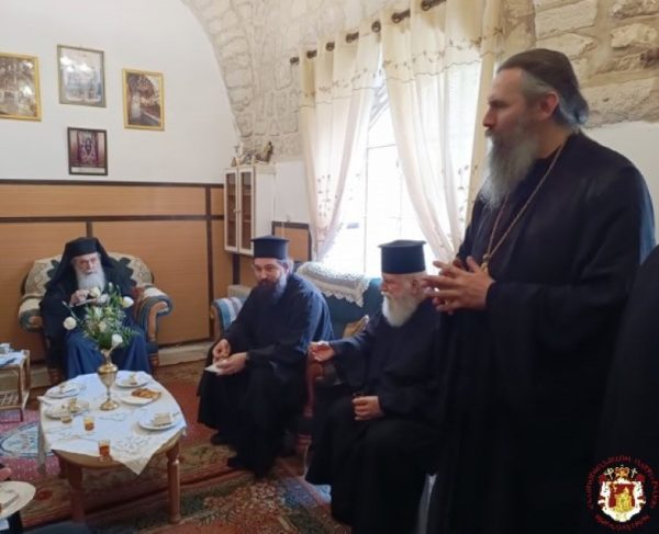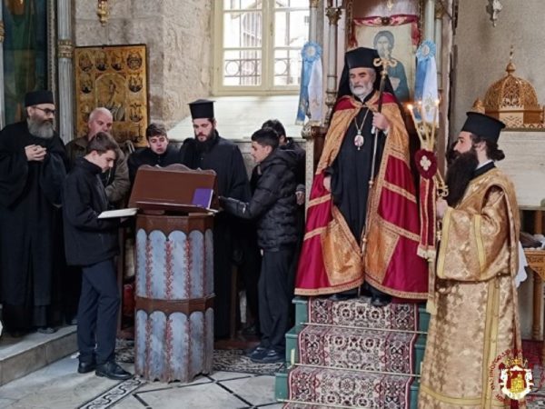 ημών και Πατριάρχης Ιεροσολύμων κ.κ. Θεόφιλος μετά Πατέρων Αγιοταφιτών διά προσκύνησιν.