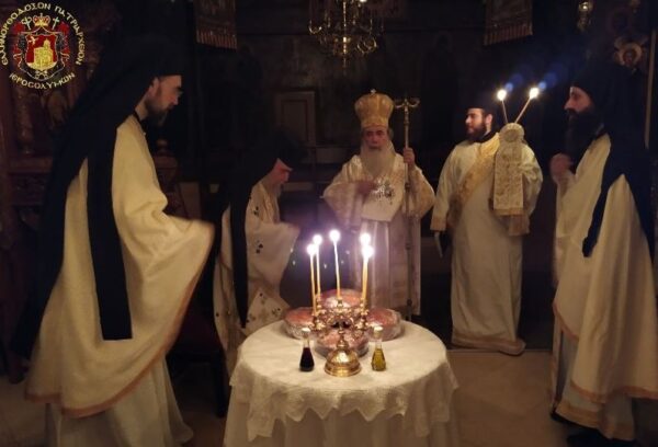 Προς τιμήν του Αγίου ετελέσθη αγρυπνία την νύκτα, της οποίας προεξήρξεν ο Πατριάρχης Ιεροσολύμων κ.κ. Θεόφιλος, συλλειτουργούντος του Σεβασμιωτάτου Αρχιεπισκόπου Κωνσταντίνης κ. Αριστάρχου, του ηγουμένου της Μονής Αρχιμανδρίτου π. Κωνσταντίνου, του Αρχιμανδρίτου Ισιδώρου, άλλων ιερέων και του Αρχιδιακόνου Μάρκου, ψάλλοντος του Γραμματέως της Αγίας και Ιεράς Συνόδου Ιεροδιακόνου π. Συμεών και των μοναχών της Μονής.