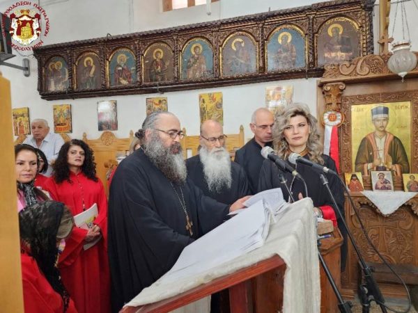 Συνήλθομεν σήμερον, ἵνα ἑορτάσωμεν Πασχαλίως καί Εὐχαριστιακῶς τό μέγα τῆς φιλανθρωπίας μυστήριον τοῦ ἐκ νεκρῶν Ἀναστάντος Θεοῦ καί Σωτῆρος ἡμῶν Ἰησοῦ Χριστοῦ καί τήν μνήμην τοῦ Ἁγίου Μεγαλομάρτυρος Γεωργίου τοῦ Τροπαιοφόρου.