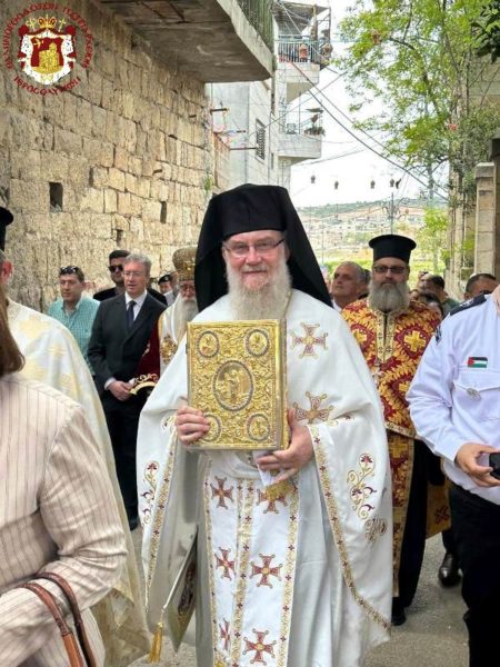 Την Κυριακήν 24 Απριλίου /7 Μαίου 2023 στον Ιερόν Ναόν της αντιπροσωπείας του Πατριαρχείου Ρουμανίας στην Εβραικήν συνοικίαν των θρησκευομένων Ιουδαίων της Νέας Πόλεως  Ιεροσολύμων, προεξάρχοντος του Σεβασμιωτάτου Μητροπολίτου Καπιτωλιάδος κ. Ησυχίου, συλλειτουργούντος αυτώ του Προισταμένου της Αντιπροσωπείας Αρχιμανδρίτου π. Θεοφίλου και του βοηθού αυτού Αρχιμανδρίτου π. Ιωάννου, οι οποίοι και την μεσημβρίαν παρέθεσαν τράπεζαν προς τιμήν της Αρχιερατικής Συνοδείας. Προς το εκκλησίασμα απηύθυνεν το εόρτιον κήρυγμα ο Σεβασμιώτατος ομιλούντος διά της κάτωθι προσφωνήσεως αυτού ως έπεται: