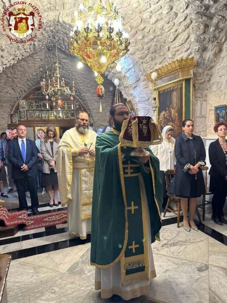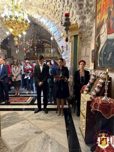 • Εις την Ιεράν Μονήν αγίου Γεωργίου Μπετζαλλά της περιοχής Βηθλεέμ, προεξάρχοντος του Πατριαρχικού Επιτρόπου Βηθλεέμ Σεβασμιωτάτου Μητροπολίτου Διοκαισαρείας κ. Βενεδίκτου, συλλειτουργούντων του Αρχιμανδρίτου π. Ιγνατίου και Αραβοφώνων Ιερέων της περιοχής Βηθλεέμ, παρουσία του Γενικού Προξένου της Ελλάδος εις τα Ιεροσόλυμα κ. Ευαγγέλου Βλιώρα.