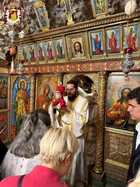 Την Αρχιερατικήν Συνοδείαν και το εκκλησίασμα δεξιώθηκε η καθηγουμένη μοναχή Πανσέμνη, η συντηρήσασα τας ιεράς εικόνας του Ναού.