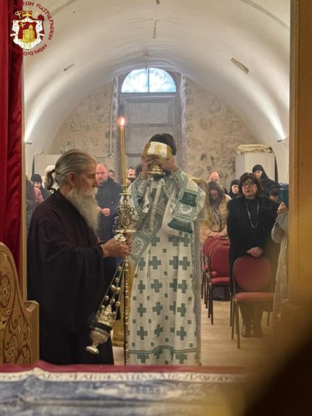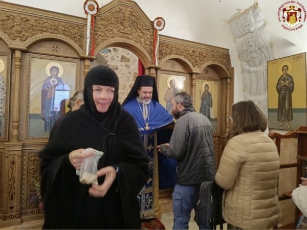 Τήν Πατριαρχικήν καί Ἱερατικήν συνοδείαν καί τούς πιστούς ἐδεξιώθη ὁ μοναχός π. Σεραφείμ, συνεχίζων τό ἔργον ἀποκαταστάσεως τῆς Μονῆς ἀρξαμένου ἀπό τοῦ Ἀρχιμανδρίτου Εὐδώρου τό 1913 καί τοῦ μακαριστοῦ Ἀρχιμανδρίτου Μοδέστου τό 1975.
