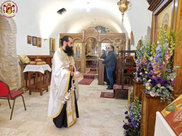 Πρός τιμήν αὐτοῦ ἐτελέσθη Ἑσπερινός ἀφ’ ἑσπέρας, τοῦ ὁποίου προεξῆρξεν ὁ Ἀρχιμανδρίτης π. Δοσίθεος καί θεία Λειτουργία τήν πρωΐαν, τῆς ὁποίας προεξῆρξεν ὁ Ἀρχιμανδρίτης π. Ἀμφιλόχιος, συλλειτουργοῦντος τοῦ διακόνου π. Εὐσταθίου καί ψάλλοντος τοῦ Ἱεροδιακόνου π. Προδρόμου καί τῆς μοναχῆς Εὐφημίας, τῇ συμμετοχῇ μοναζουσῶν, τῆς ἀντιπροσώπου τοῦ Γενικοῦ Προξενείου κ. Ἀθανασίας Μάλιου καί ἄλλων Ἱεροσολυμιτῶν πιστῶν.