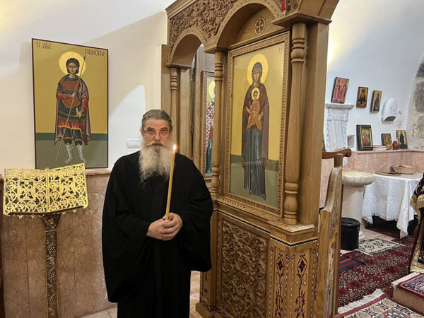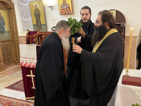 Την Πατριαρχική και Αρχιερατική Συνοδεία εδεξιώθη ο καλώς και αφωσιωμένως επιμελούμενος των της Μονής και υπερασπίζων αυτήν εκ των προκλήσεων των περιοίκων μοναχός Αντίοχος.