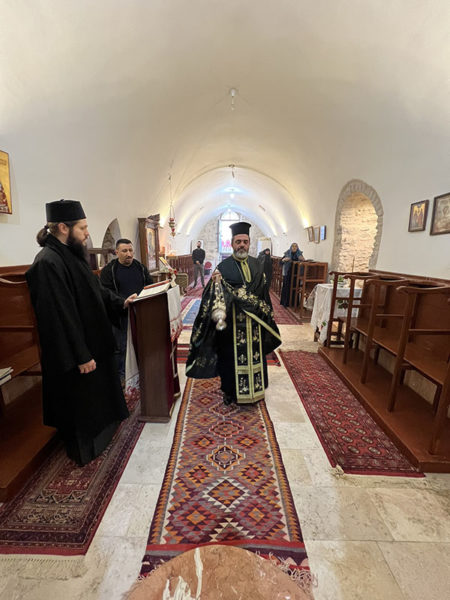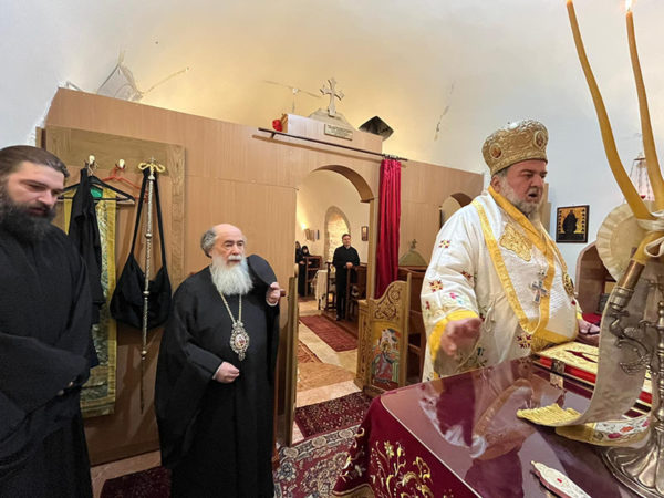 Διαρκούσης της θείας Λειτουργίας επισκέφθηκε την Ιερά Μονή για να προσκυνήσει ο Μακαριώτατος Πατριάρχης Ιεροσολύμων κ.κ. Θεόφιλος μετά Πατέρων Αγιοταφιτών .