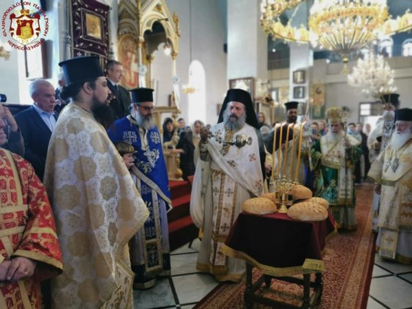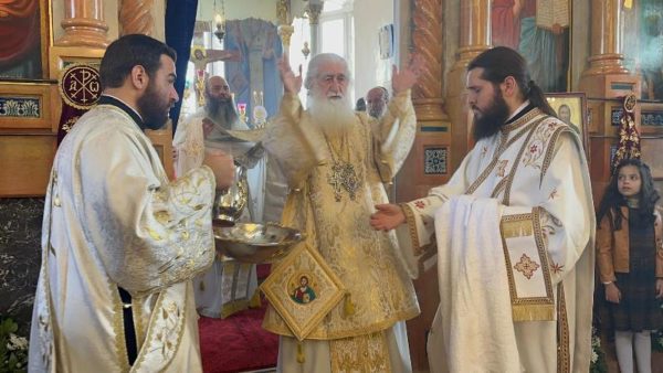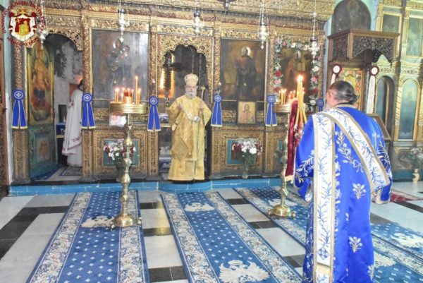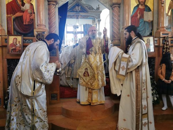 Μετά την θεία Λειτουργία ο συνεχίζων την ανακαίνιση του Ιερού Ναού Αρχιδιάκονος π. Μάρκος δεξιώθηκε την Αρχιερατική Συνοδεία και το εκκλησίασμα.