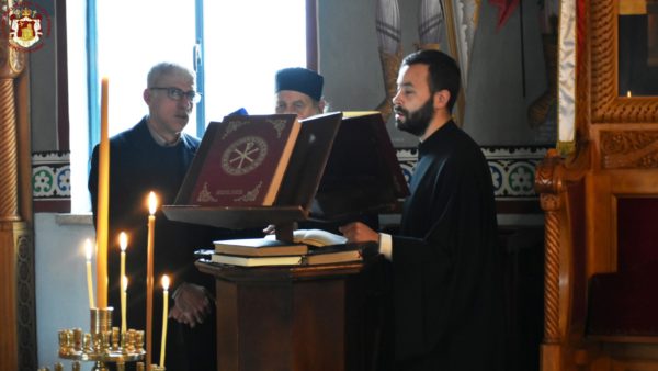 Μετά τη Θεία Λειτουργία, ο ηγούμενος Αρχιμανδρίτης π. Επιφάνιος δεξιώθηκε την Πατριαρχική Συνοδεία και το εκκλησίασμα στο ηγουμενείο.