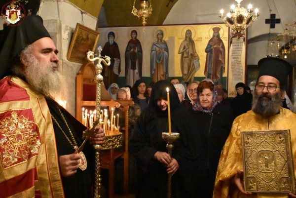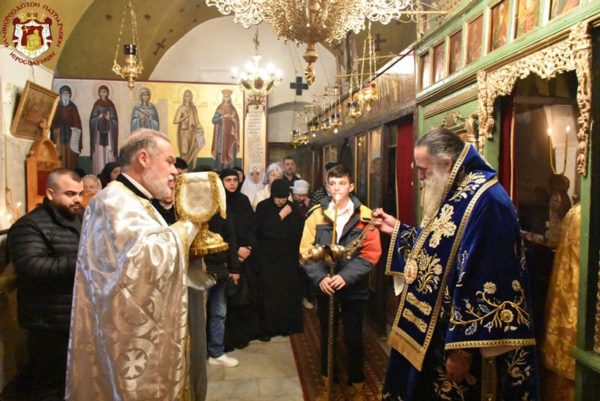 Διά τήν ἑορτήν αὐτοῦ ἐτελέσθη Ἑσπερινός ἀφ’ ἑσπέρας καί θεία Λειτουργία τήν πρωΐαν, προεξάρχοντος τοῦ Σεβασμιωτάτου Ἀρχιεπισκόπου Σεβαστείας κ. Θεοδοσίου, συλλειτουργούντων αὐτῷ τοῦ Τελετάρχου Ἀρχιμανδρίτου π. Βαρθολομαίου καί τοῦ π. Νεκταρίου – Ράτζαα καί τοῦ Ἱεροδιακόνου καί Ἐπιστάτου τῆς Μονῆς ταύτης π. Δοσιθέου καί μετεχόντων πολλῶν πιστῶν ἐξ Ἱεροσολύμων καί ἐξ ἄλλων πόλεων καί προσκυνητῶν.