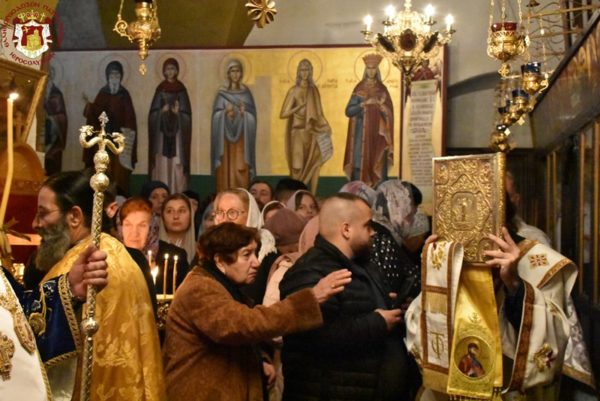 Ο λειτουργών Αρχιερεύς εκήρυξε τον θείον λόγον εις τους πιστούς, ο δε επιστάτης Ιεροδιάκονος π. Δοσίθεος, εδεξιώθη την Αρχιερατικήν Συνοδείαν και το εκκλησίασμα εις το ηγουμενείον.