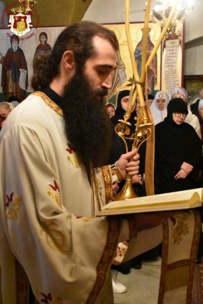 Συλλειτούργησαν ο Τελετάρχης Αρχιμανδρίτης π. Βαρθολομαίος και ο π. Νεκτάριος – Ράτζαα και ο Ιεροδιάκονος και Επιστάτης της Μονής ταύτης π. Δοσίθεος.