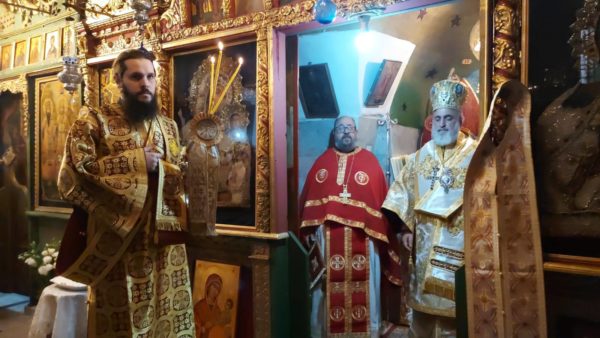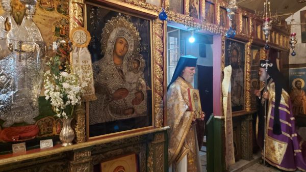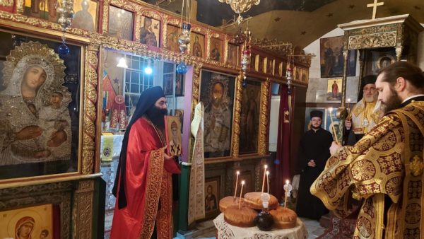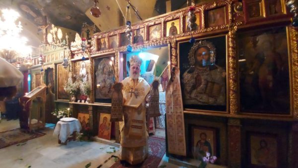 Την Αρχιερατική και Πατριαρχική Συνοδεία και το εκκλησίασμα δεξιώθηκε φιλοφρόνως ο Ηγούμενος Αρχιμανδρίτης π. Φιλούμενος.