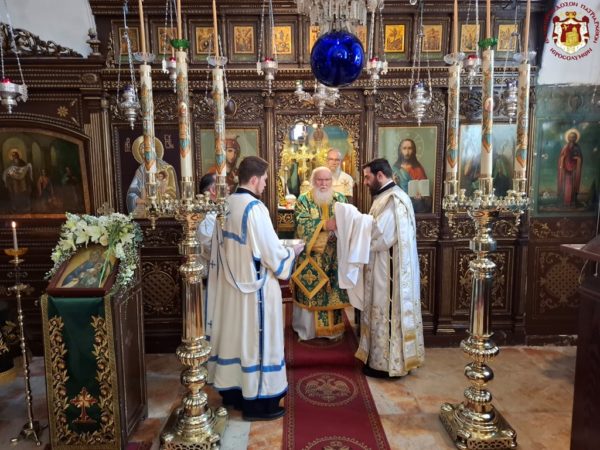 Μετά την θεία Λειτουργία ο Ηγούμενος της Μονής και Γραμματεύς της Αγίας και Ιεράς συνόδου Ιεροδιάκονος π. Συμεών δεξιώθηκε την Πατριαρχική Συνοδεία και το εκκλησίασμα στο Ηγουμενείο και το προαύλιο της Ιεράς Μονής.