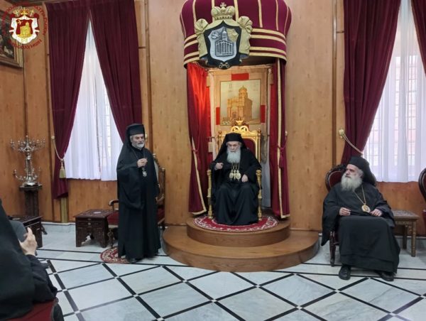Aκολούθησε η άνοδος της Αρχιερατικής συνοδείας στο Πατριαρχείο η οποία και υπέβαλε τα σέβη της στον Μακαριώτατο Πατριάρχη Ιεροσολύμων κ.κ. Θεόφιλο.