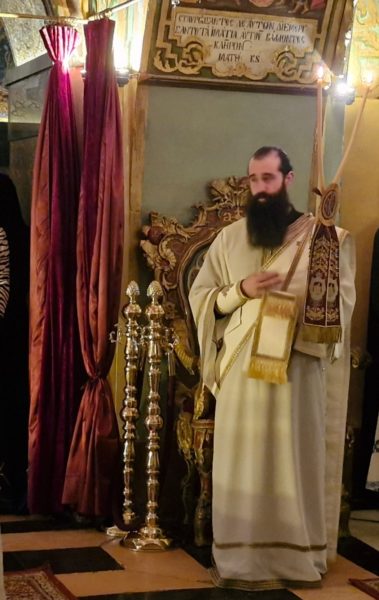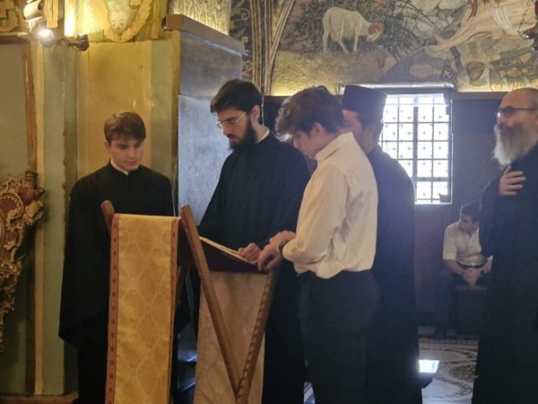 Έψαλλε ο Πρωτοψάλτης του Πανιέρου Ναού της Αναστάσεως διάκονος π. Ευστάθιος με τη μουσική χορωδία της Πατριαρχικής Σχολής Σιών.