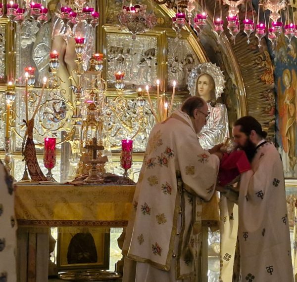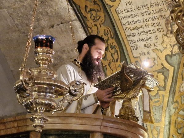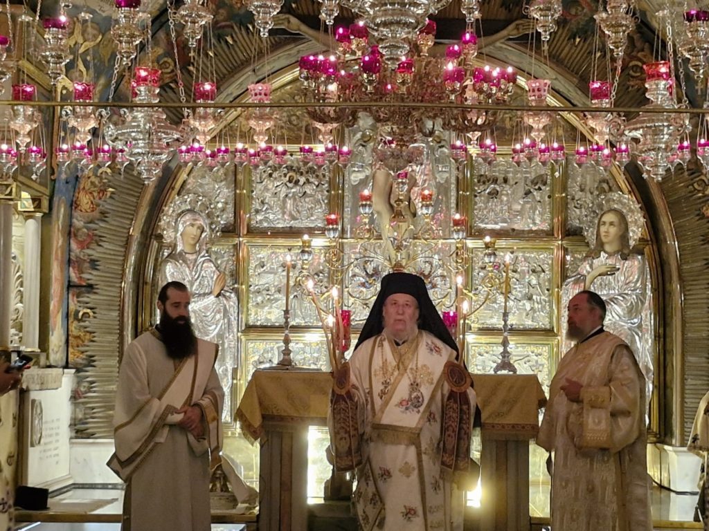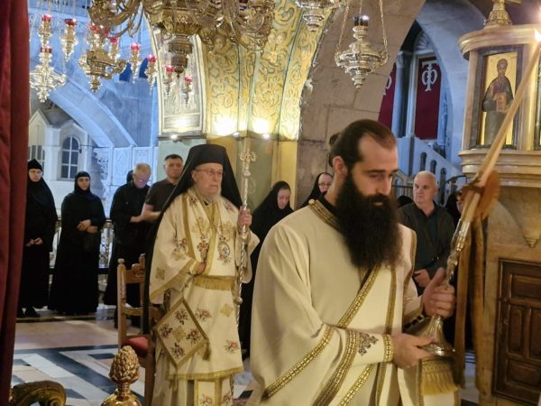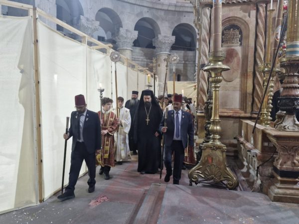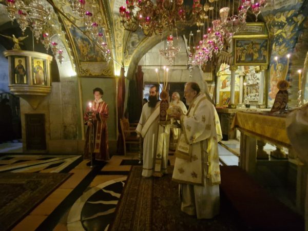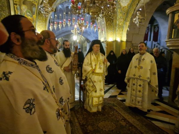 Μετά τη λιτανεία προ του Αγίου Κουβουκλίου, ανεγνώσθη η επιστολή του Πατριάρχου Ιεροσολύμων Κυρίλλου ελληνιστί και αραβιστί.