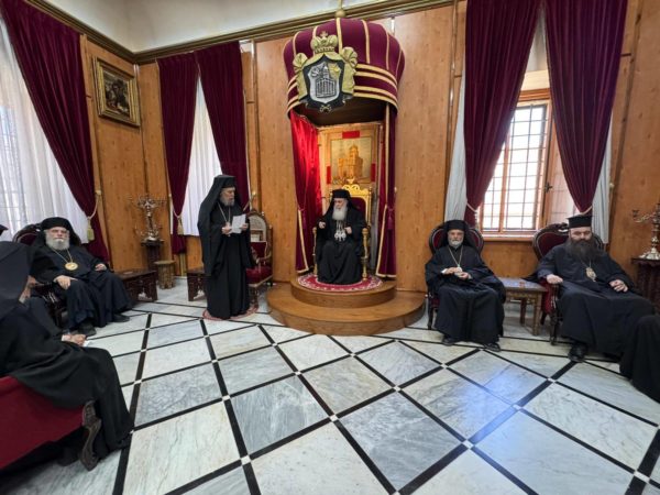 Ακολούθως η Αρχιερατική Συνοδεία απέδωσε τα σέβη της στον Μακαριώτατο Πατριάρχη Ιεροολύμων κ.κ. Θεόφιλο.