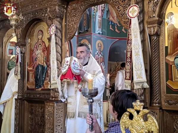 Την Πατριαρχική και Αρχιερατική συνοδεία και το ευσεβές εκκλησίασμα δεξιώθηκε ο επιμελώς συντηρών την Μονήν μοναχός π. Χαρίτων.