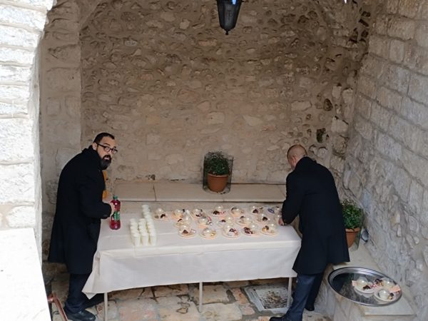 Πρός τιμήν αὐτοῦ ἐτλεέσθη Ἑσπερινός ἀφ’ ἑσπέρας καί θεία Λειτουργία τήν πρωΐαν, προεξάρχοντος τοῦ Σεβασμιωτάτου Ἀρχιεπισκόπου Γεράσων κ. Θεοφάνους, συλλειτουργούντων τῶν Ἀρχιμανδριτῶν π. Φιλουμένου καί π. Μακαρίου, τῶν Ἀραβοφώνων Πρεσβυτέρων π. Φάραχ καί π. Νεκταρίου καί τοῦ Ἱεροδιακόνου π. Δοσιθέου, ψαλλόντων τοῦ Ἱεροδιακόνου π. Συμεών καί τῶν μαθητῶν τῆς Πατριαρχικῆς Σχολῆς Σιών ἐν συμμετοχῇ μοναχῶν, μοναζουσῶν καί Χριστιανῶν ἐξ Ἱεροσολύμων.
