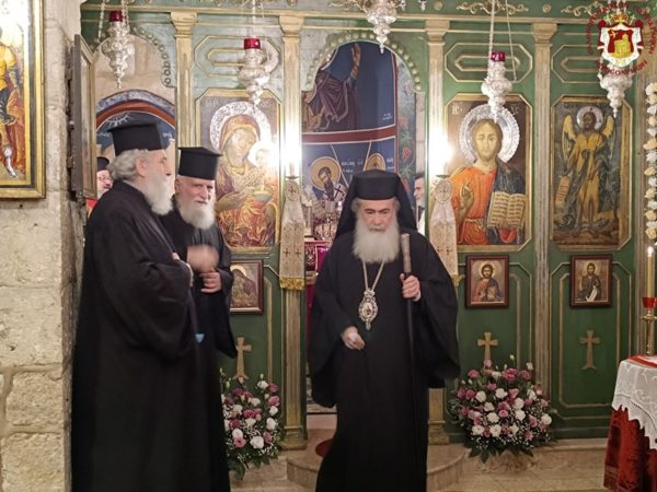 Διαρκούσης τῆς θείας Λειτουργίας προσῆλθε διά προσκύνησιν ὁ Μακαριώτατος Πατήρ ἡμῶν καί Πατριάρχης Ἱεροσολύμων κ.κ. Θεόφιλος μετά Πατέρων Ἁγιοταφιτῶν. Τήν Πατριαρχικήν καί Ἀρχιερατικήν Συνοδείαν καί τό ἐκκλησίασμα ἐδεξιώθη ἡ καλῶς ἐπιμελουμένη τῶν τῆς Μονῆς ὁσιωτάτη Ἡγουμένη μοναχή Σάρρα.