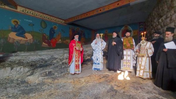 Μετά την Θεία Λειτουργία ο καλώς επιμελούμενος των της Μονής ηγούμενος Αρχιμανδρίτης π. Επιφάνιος δεξιώθηκε την Αρχιερατική Συνοδεία και το εκκλησίασμα στο ηγουμενείο και το προαύλιο της Ιεράς Μονής.